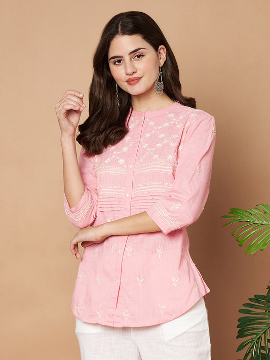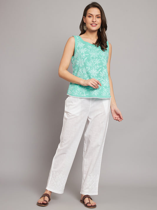 Matcha Green Hand-embroidered Summer Chikankari Top