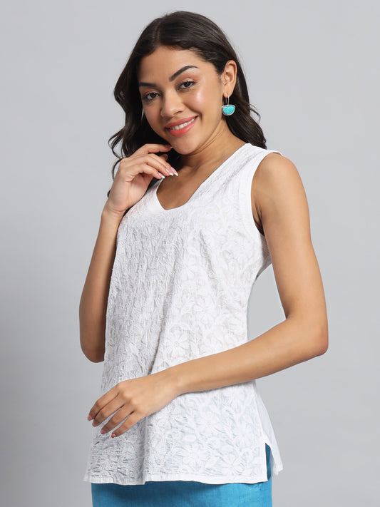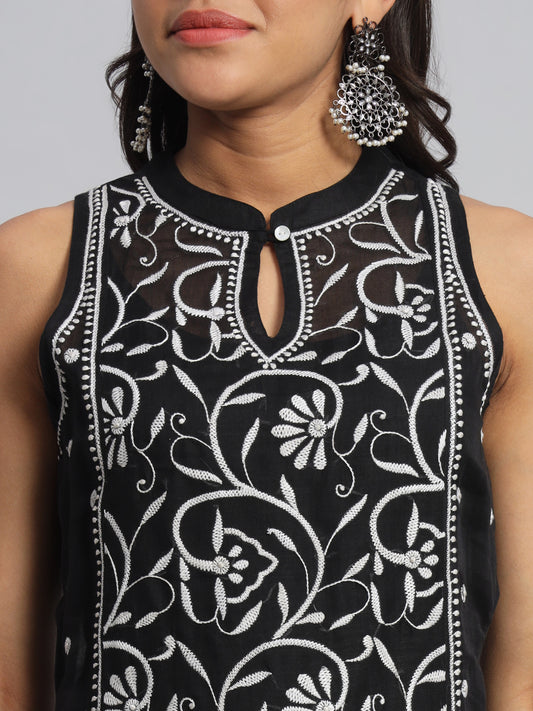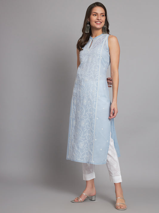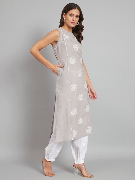 CMKA301GY GREY Sleeveless Chikankari Kurta with Pockets