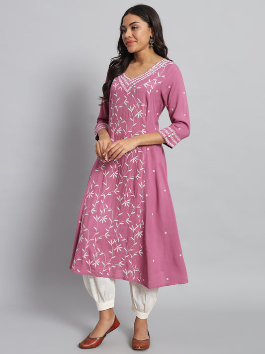 Mangalgiri Navy Blue Embroidered Kurta with Pocket