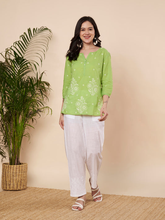 Matcha Green Hand-embroidered Summer Chikankari Top