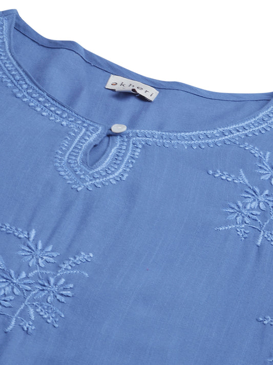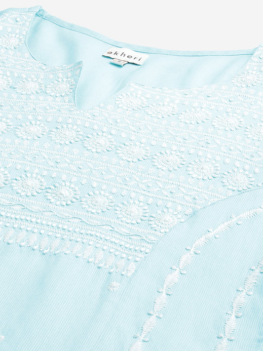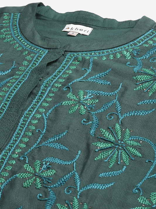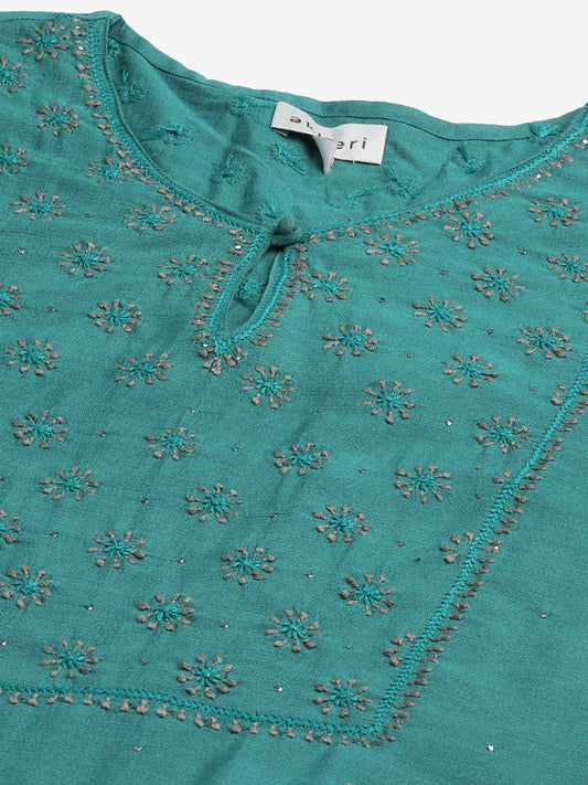 PSKA169TL- Poly Silk Teal Chikankari Kurta