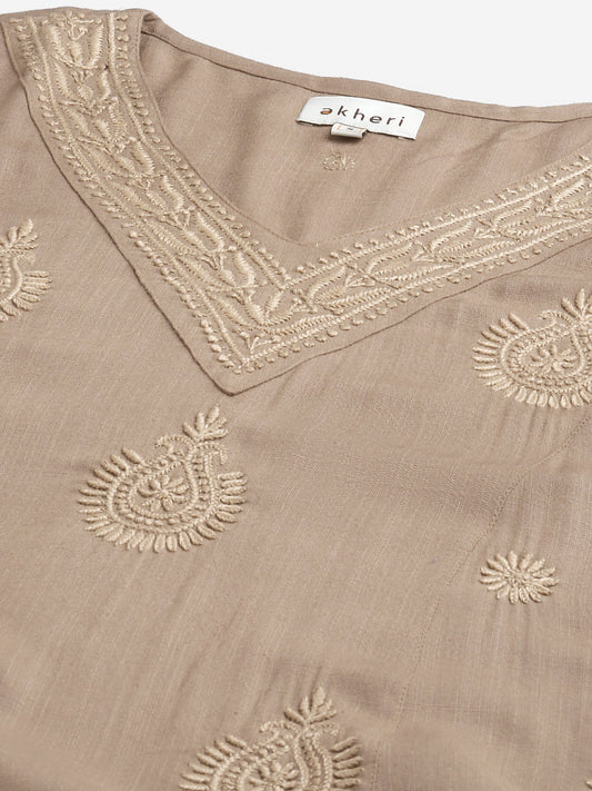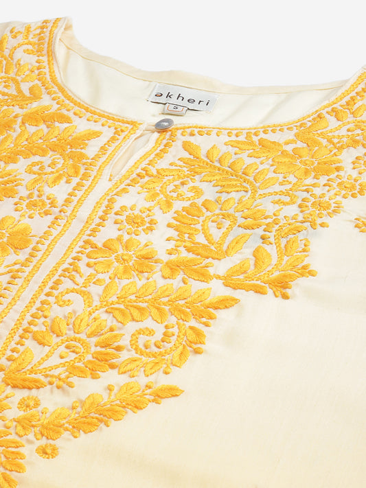 Mustard Pure Chanderi Silk Chikankari Kurta