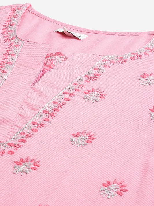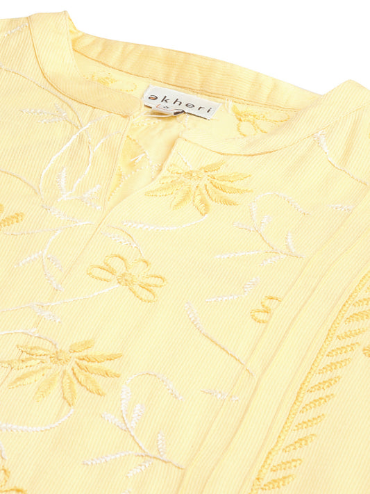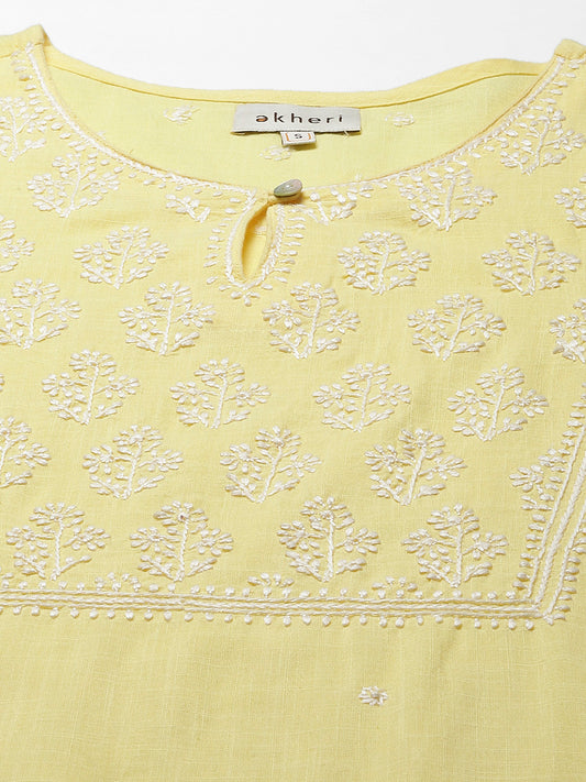 Yellow Cotton Slub Hand-Embroidered Kurta