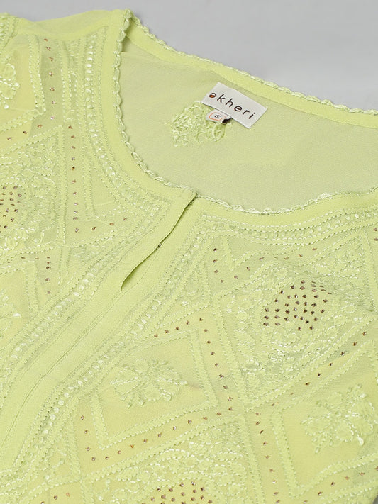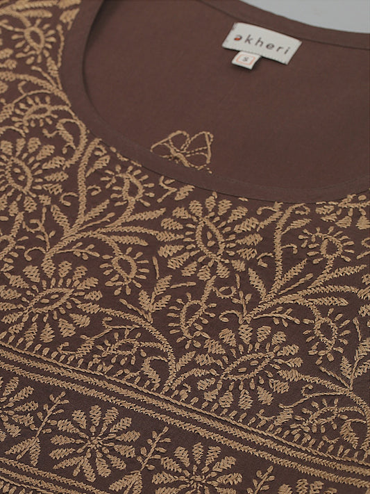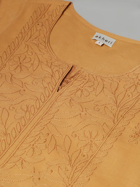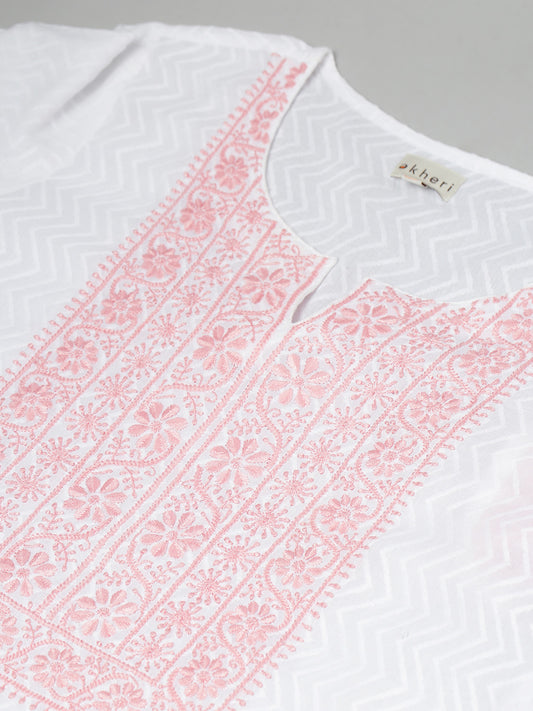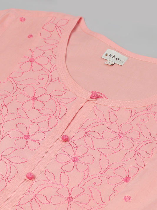 Peach & Pink Chikankari Floral Embroidered Kurta