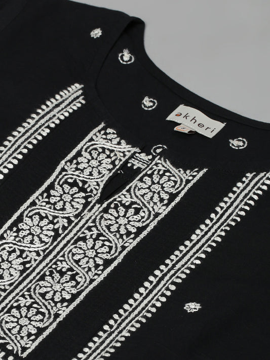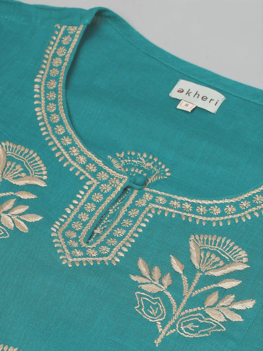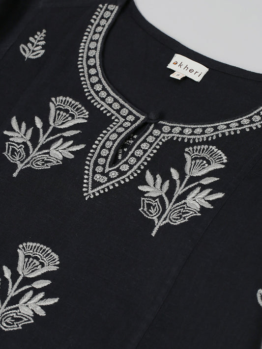 Mangalgiri Navy Blue Embroidered Kurta with Pocket