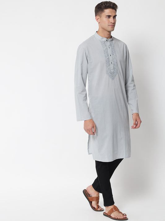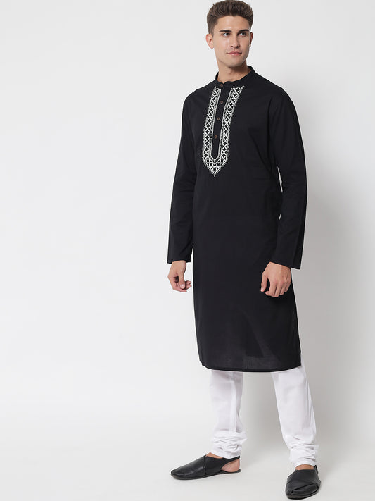 Men's Black Cotton Chikankari Hand-Embroidered Kurta