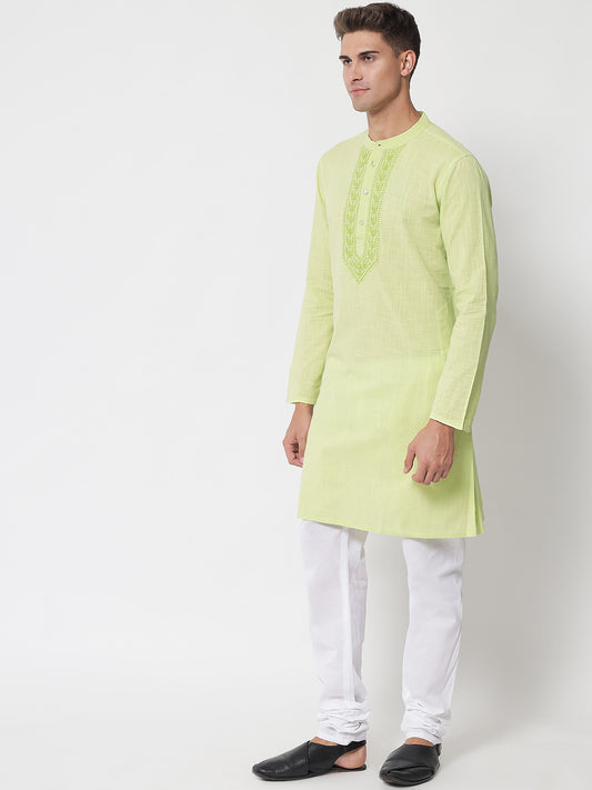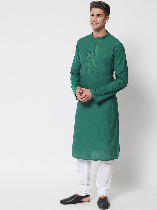 MGMEN216GR Men's Green Cotton Mangalgiri Chikankari Kurta