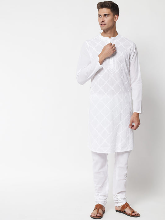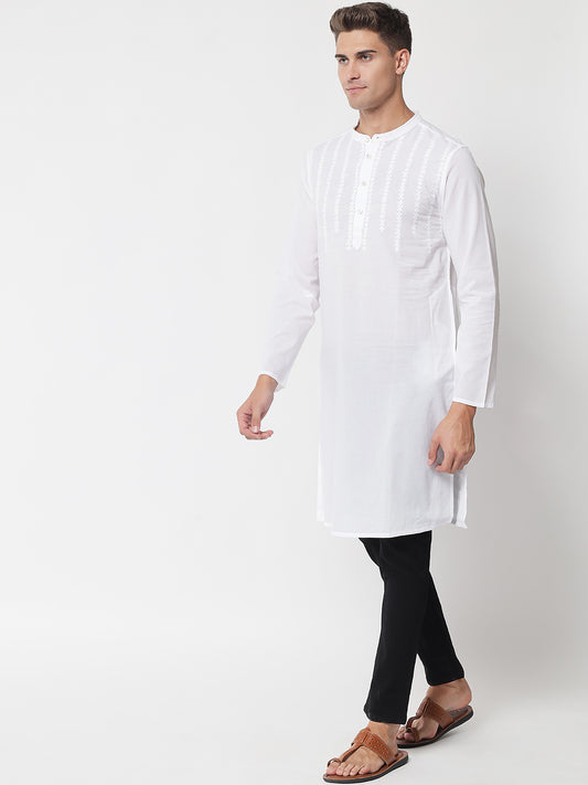 Men's Beige Chikankari Kurta with Central Panel Embroidery