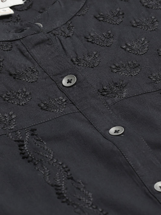 Black Chikankari Embroidered Casual Shirt