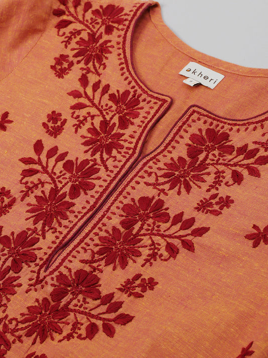 Sold outRust Mangalgiri Embroidered Kurta