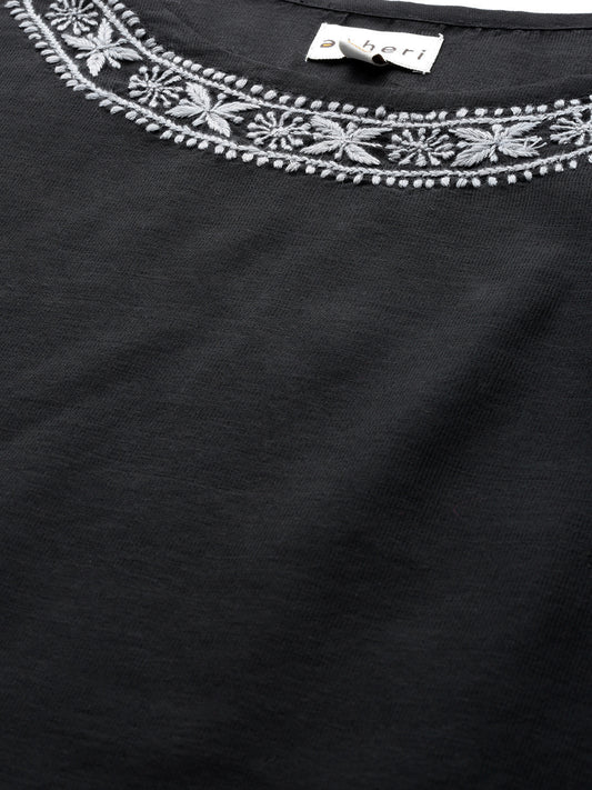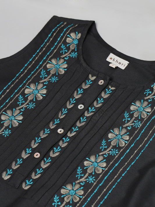 Black Sleeveless A-Line Chikankari Top