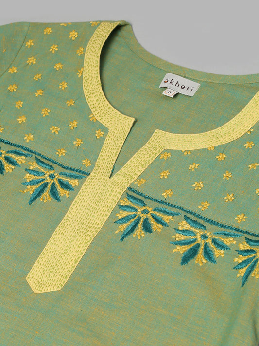 Green Mangalgiri Embroidered Kurta