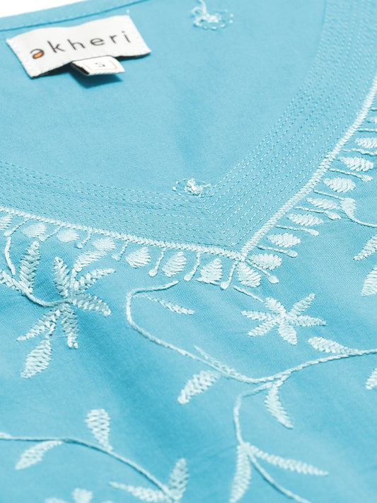 Blue V-neck Chikankari Top