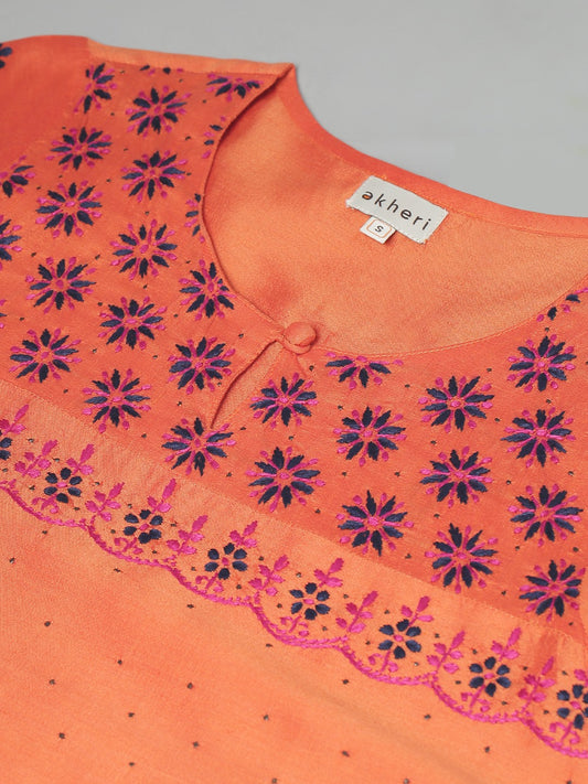 Orange Silk Kurta with Embroidery and Mukaish Work