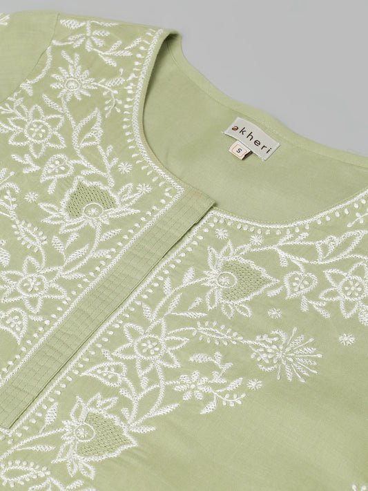 Pista-Coloured Chikankari Kurta