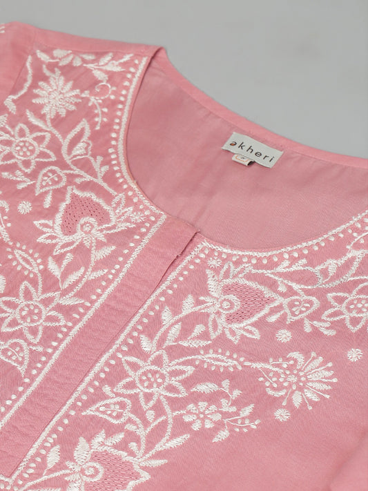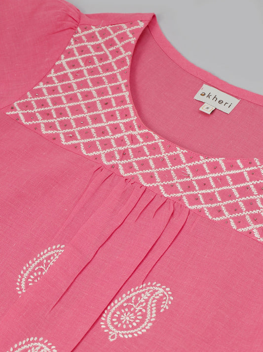 Pink A-Line Chikankari Top