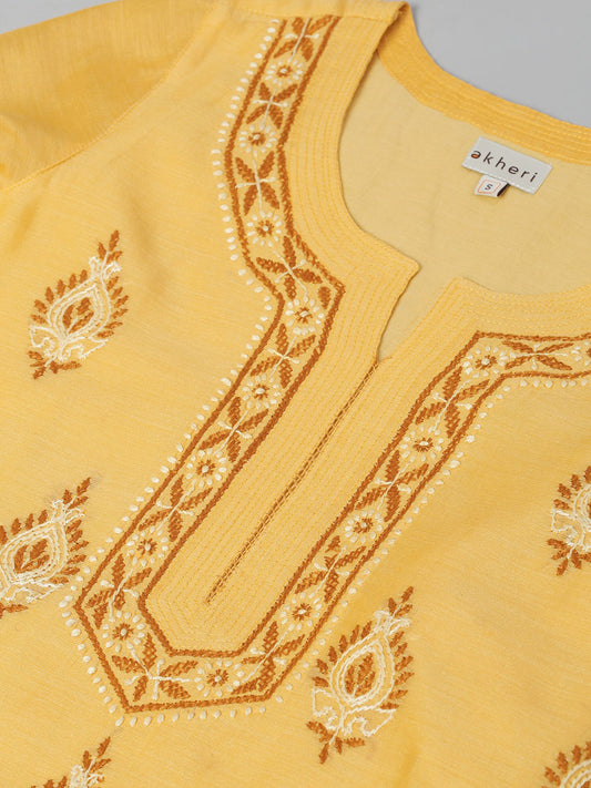 Yellow Silk Chikankari Kurta