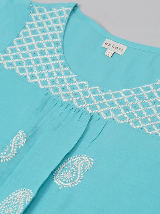 Sky Blue Chikankari Short Kurta