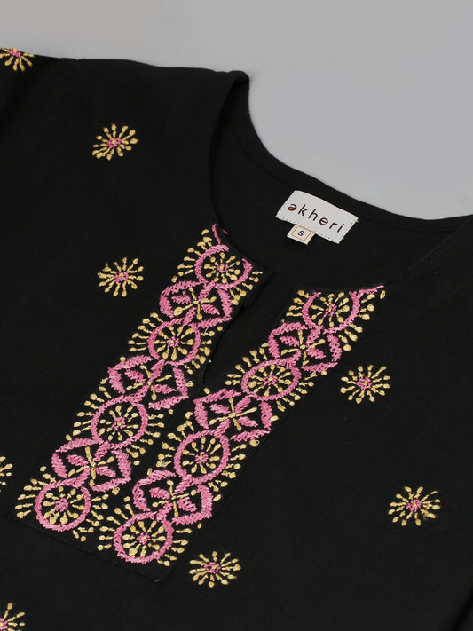 Black Mangalgiri Kurta with two-colour Embroidery