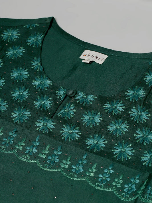 Bottle Green Silk Kurta with Embroidery and Mukaish Work