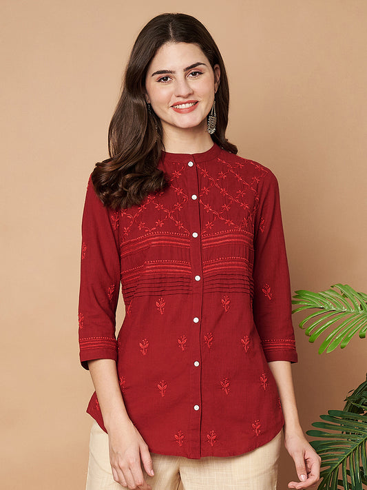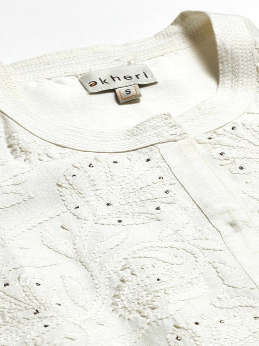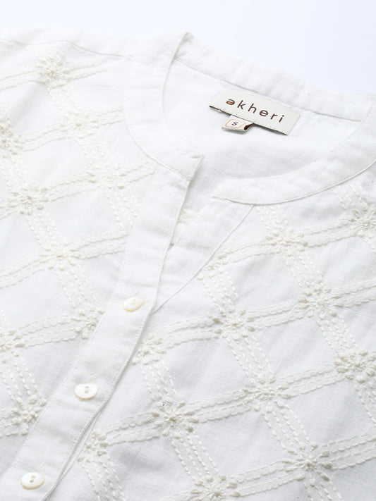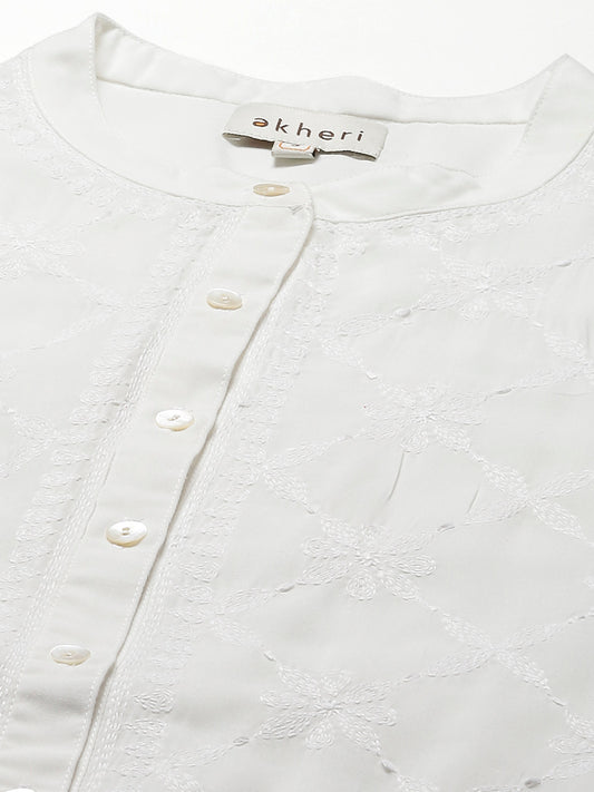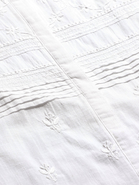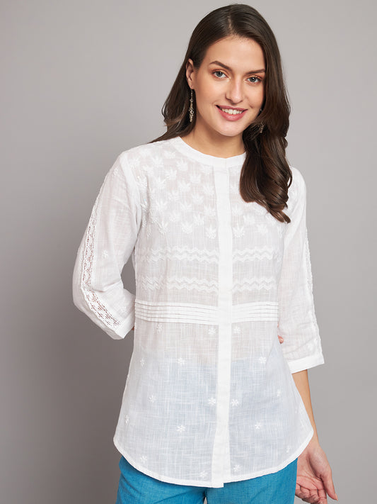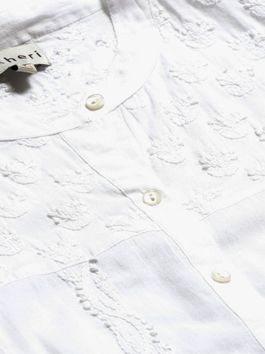 SLTP268WH White Chikankari Shirt with Lace Inserts