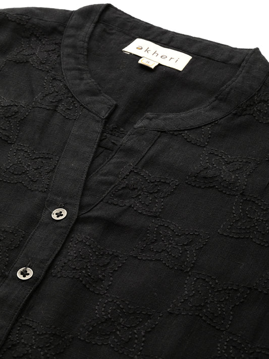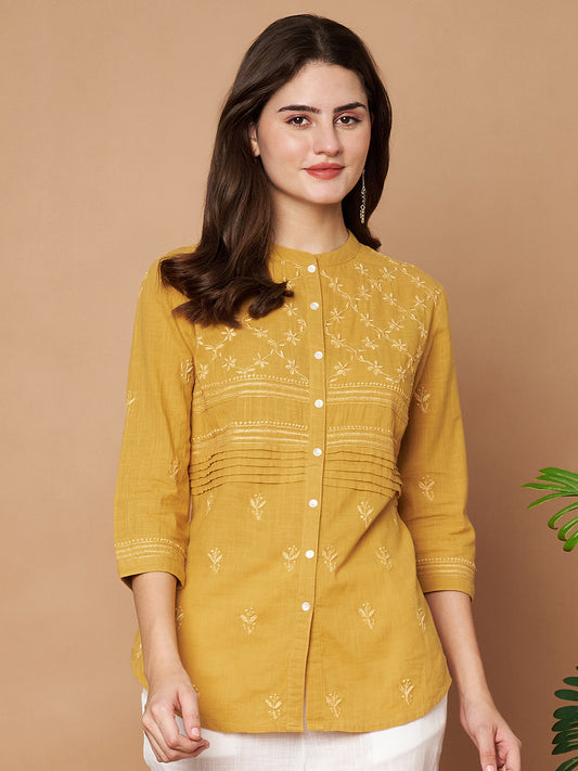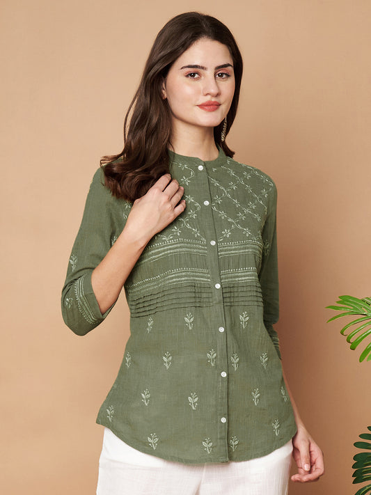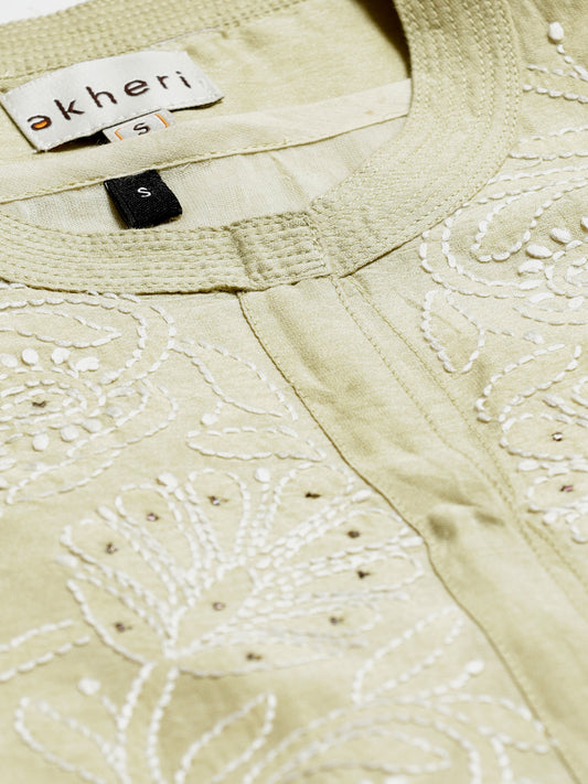 CHSR009OL Olive Silk Chikankari Long Shirt