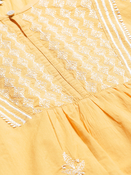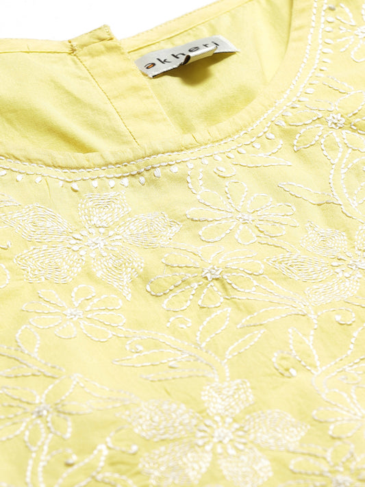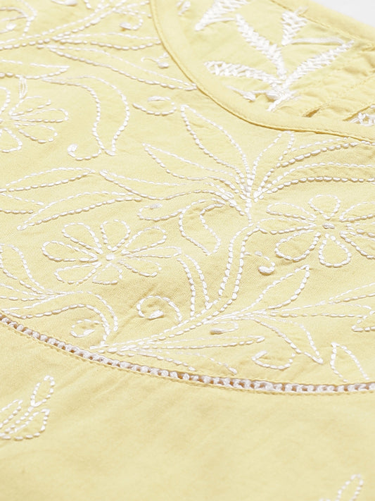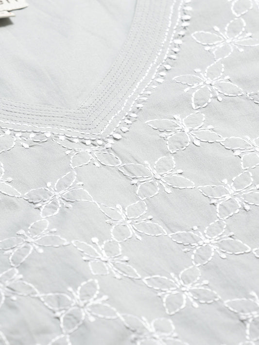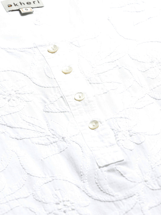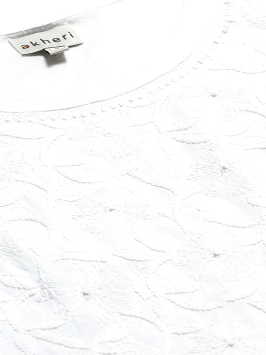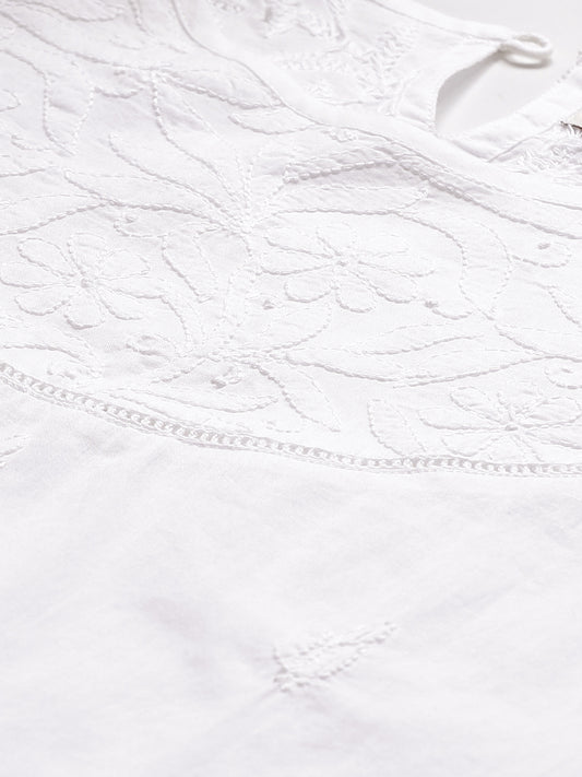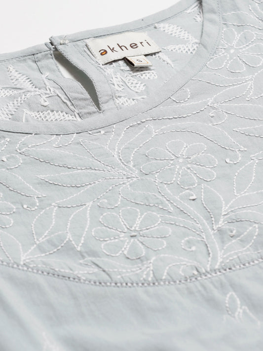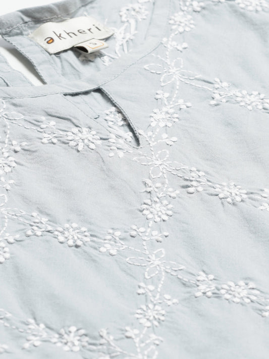Blue Sleeveless A-Line Top with White Phanda Jaal