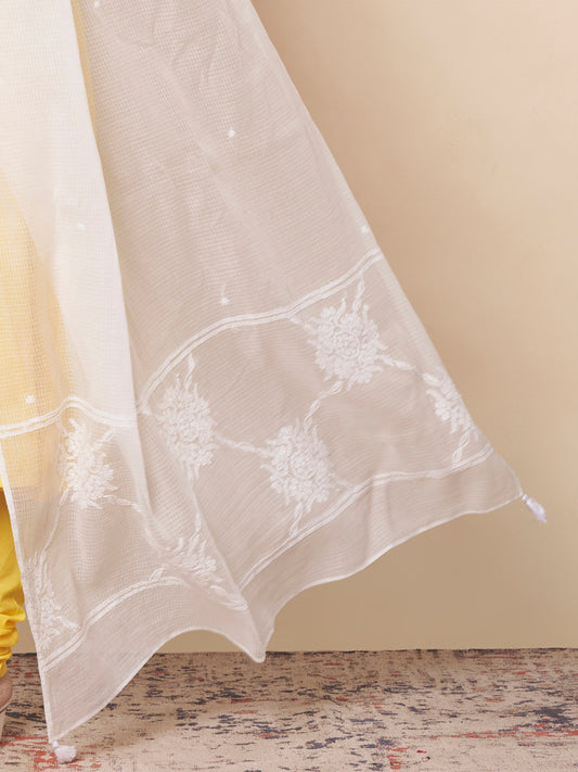 Chikankari White Kota Cotton Dupatta