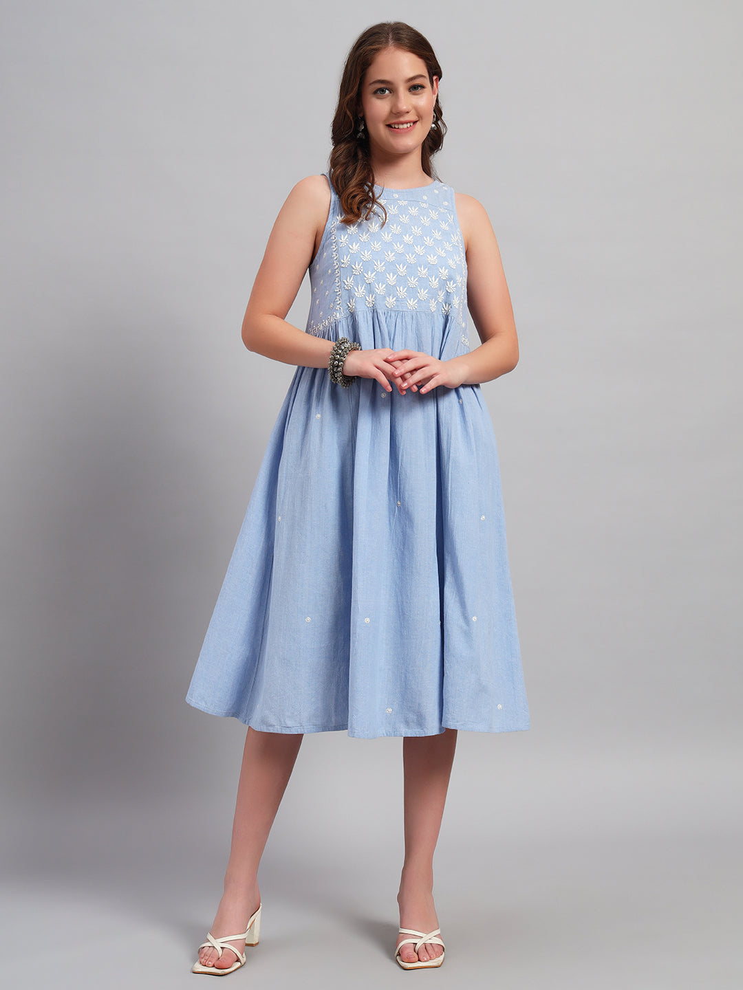 Chambray Chikankari Summer Dress
