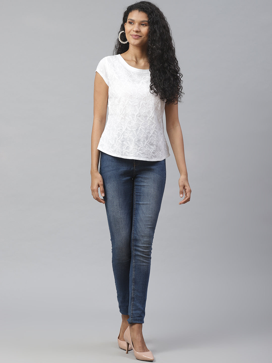 White Tepchi Boat-Neck Chikankari Top