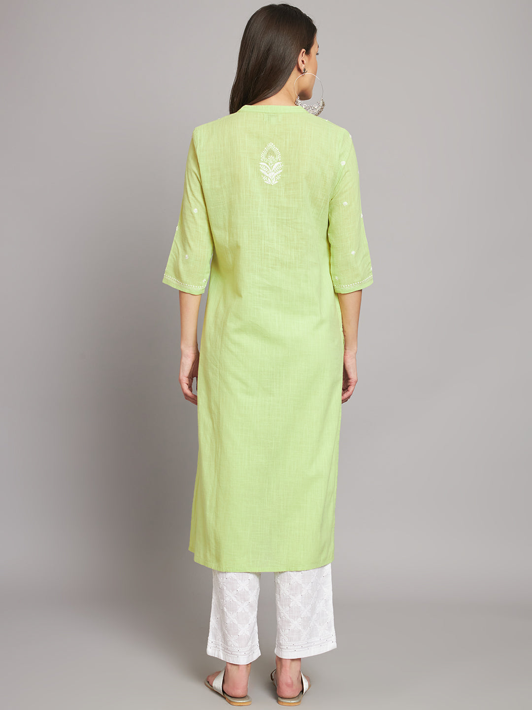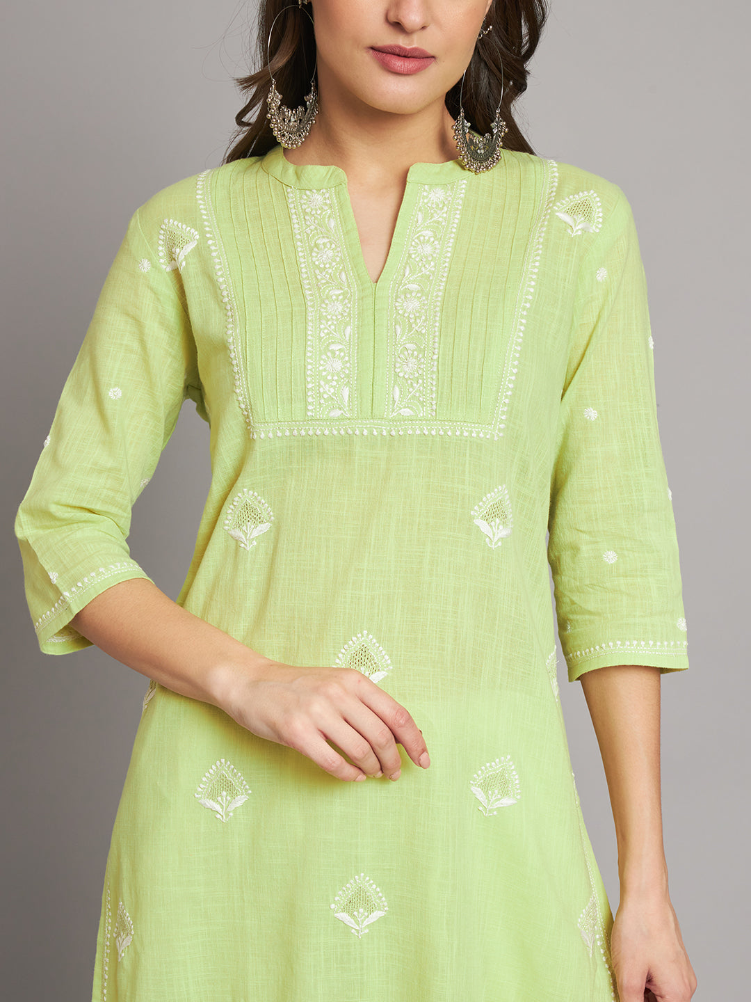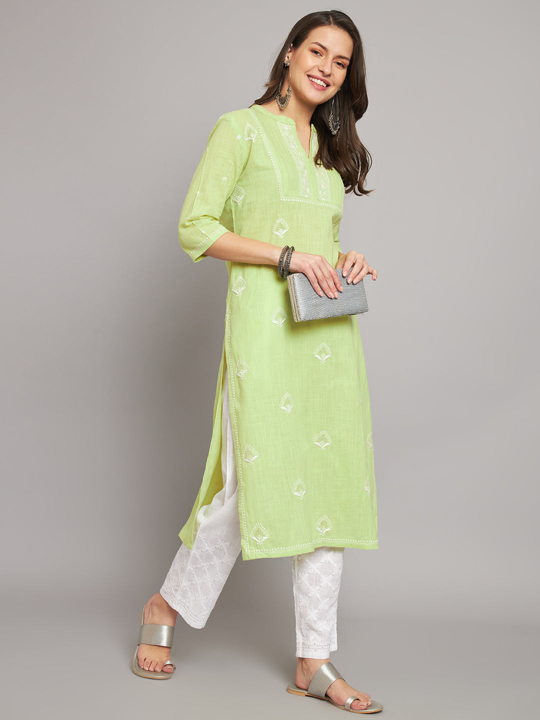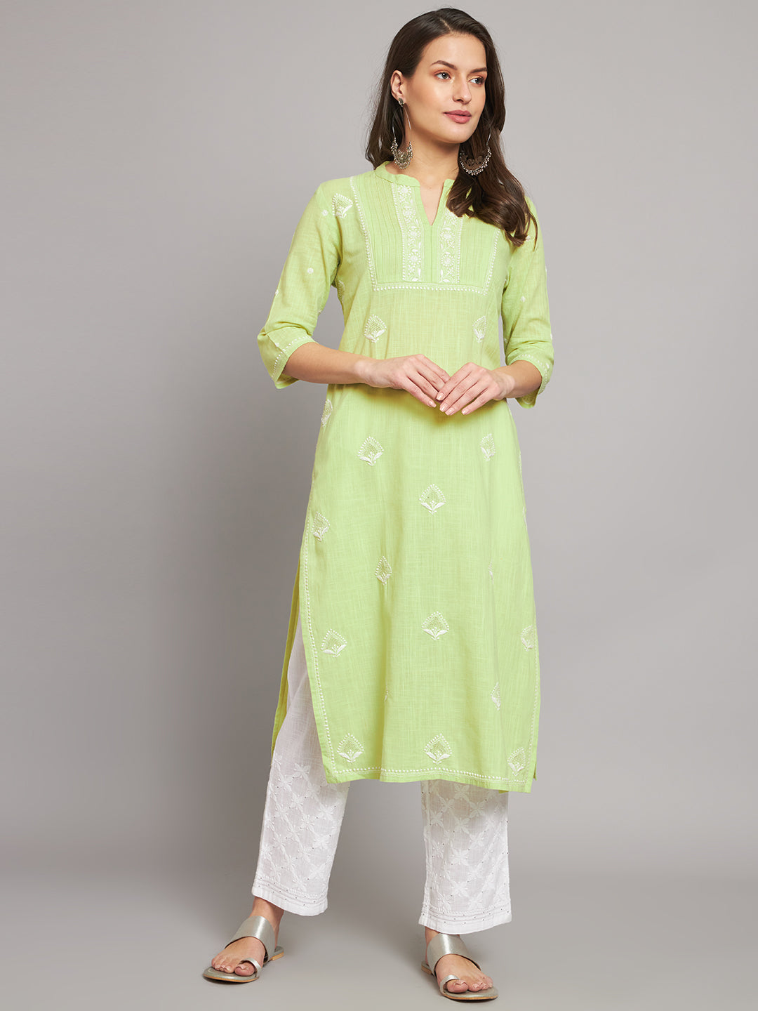 SLKA269GR Green Mangalgiri Chikankari Straight Kurta