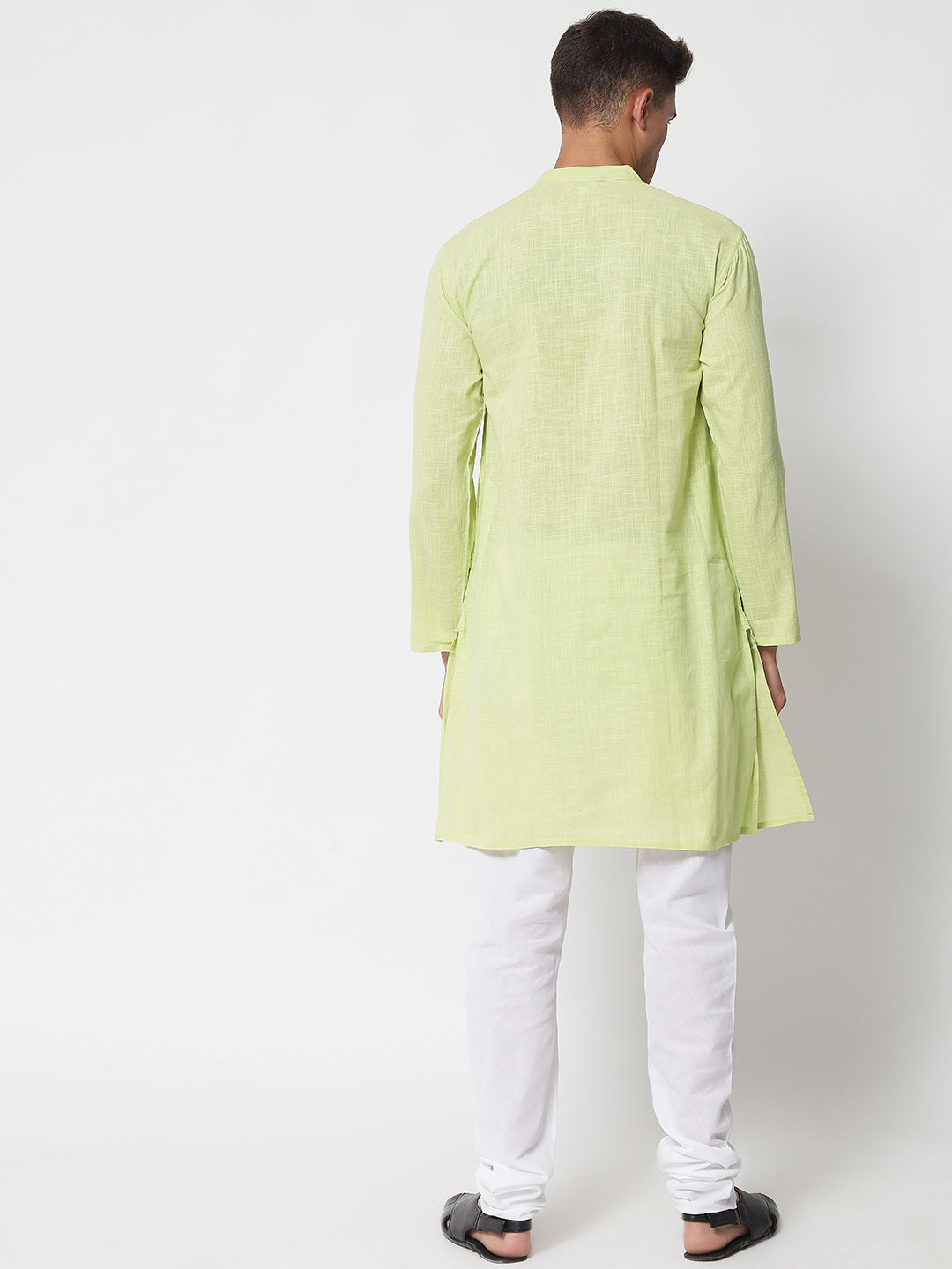 Men's Lime Cotton Slub Chikankari Kurta
