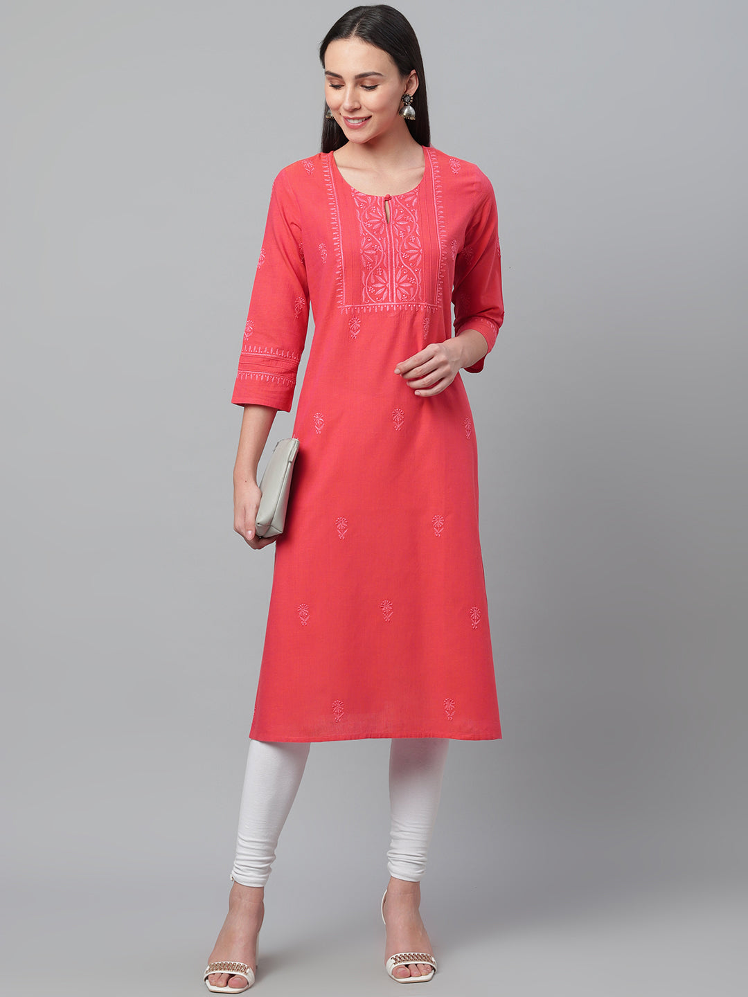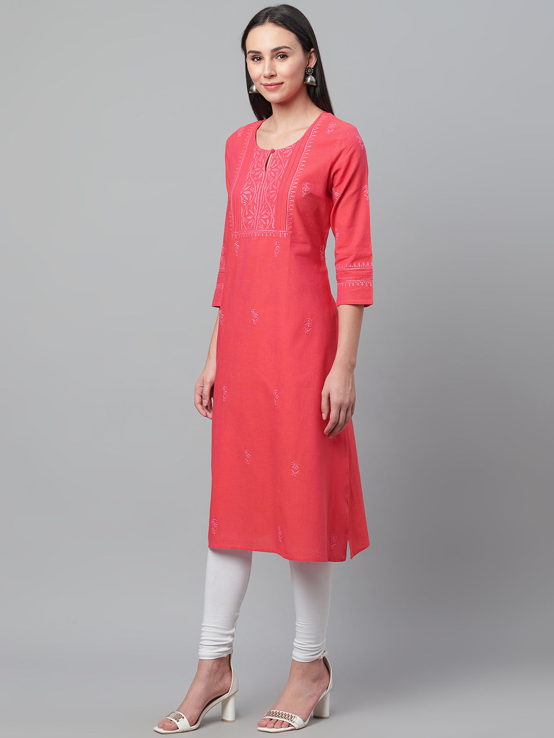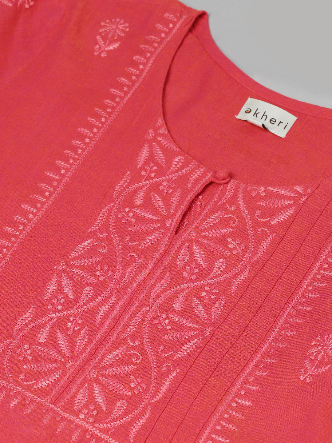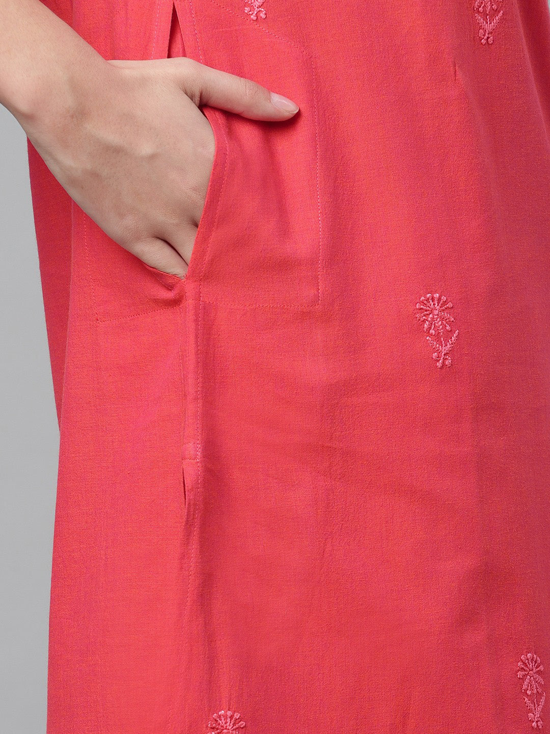 Mangalgiri Pink Embroidered Kurta with Pocket
