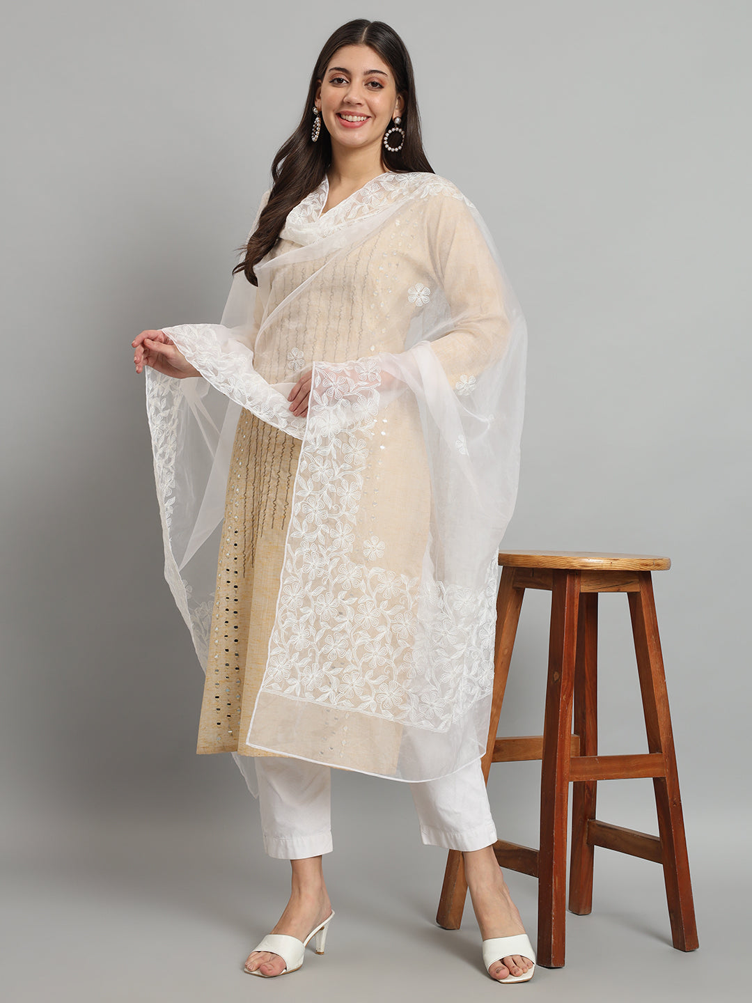 Immerse yourself in the ethereal beauty of our Organza Chikankari Dupatta, an embodiment of grace, designed for the modern woman who appreciates the timeless allure of handcrafted luxury.