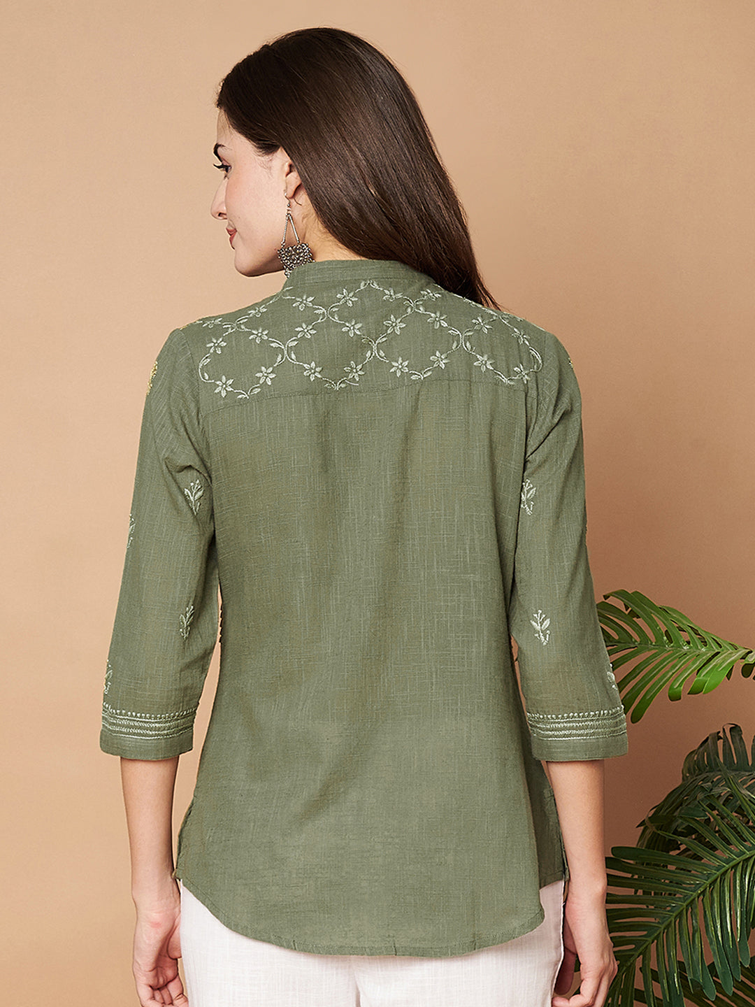 | Craft | Hand-embroidered Chikankari using traditional stitches |