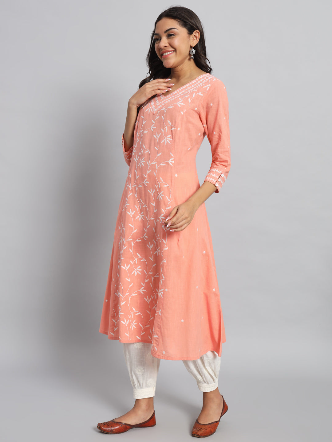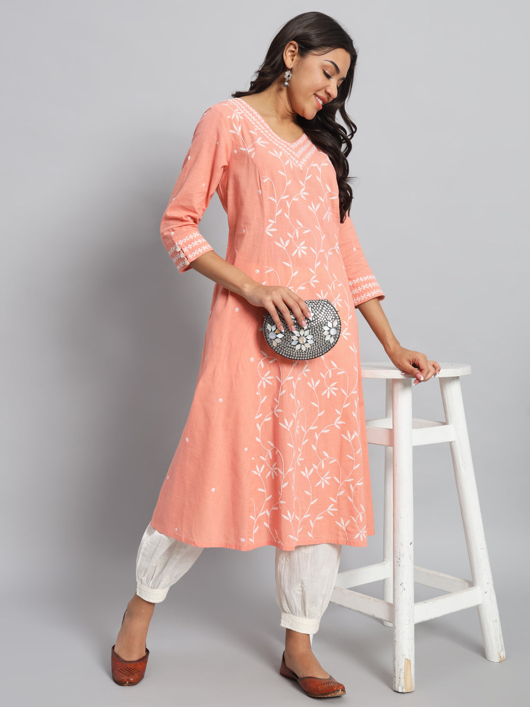 Chikankari is a traditional hand embroidery art form from Lucknow, India, involving intricate and delicate thread work on fine fabrics like cotton, georgette, or chiffon. Each piece is carefully hand-embroidered by skilled artisans, making it truly one-of-a-kind.