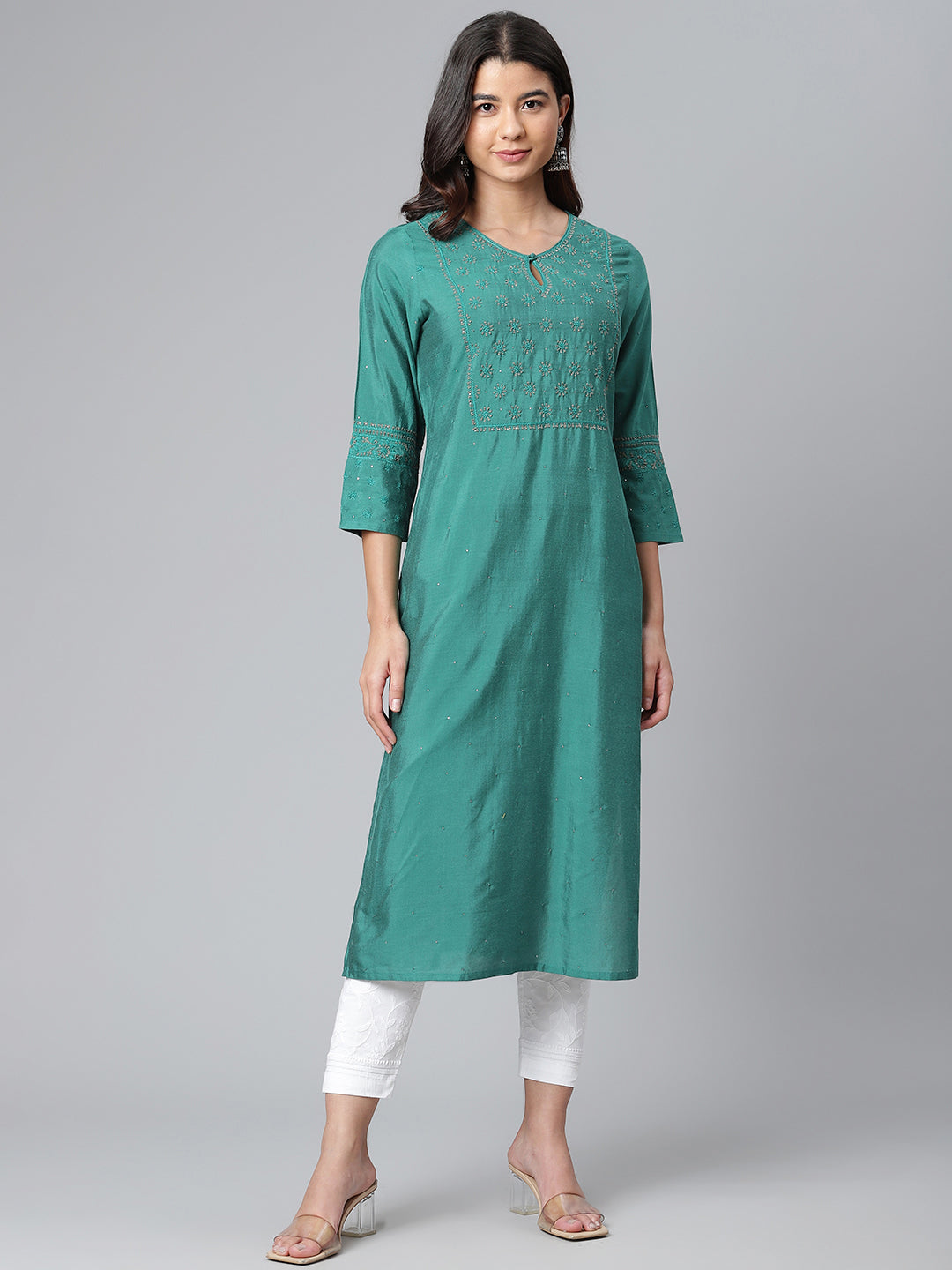 PSKA169TL- Poly Silk Teal Chikankari Kurta
