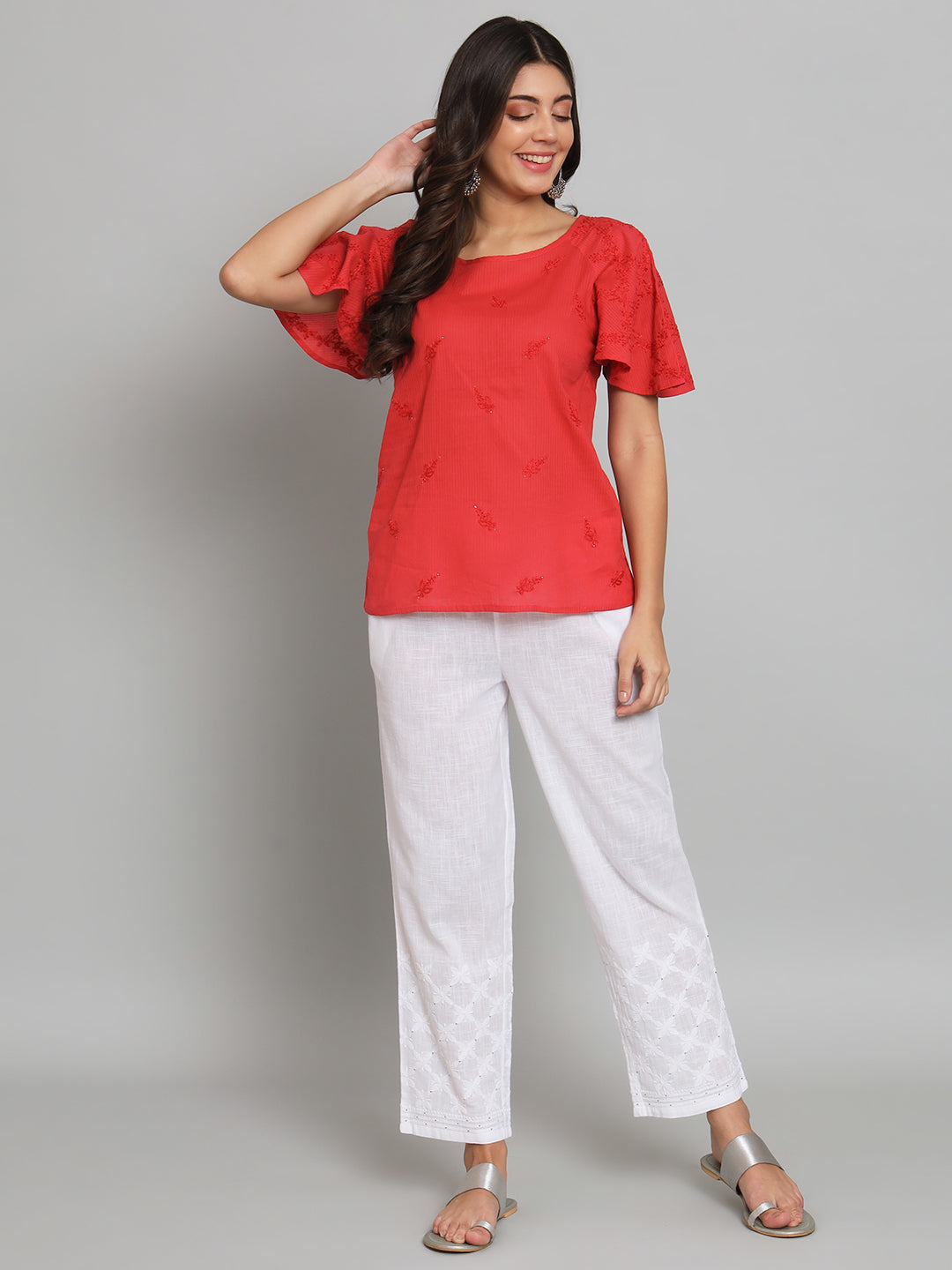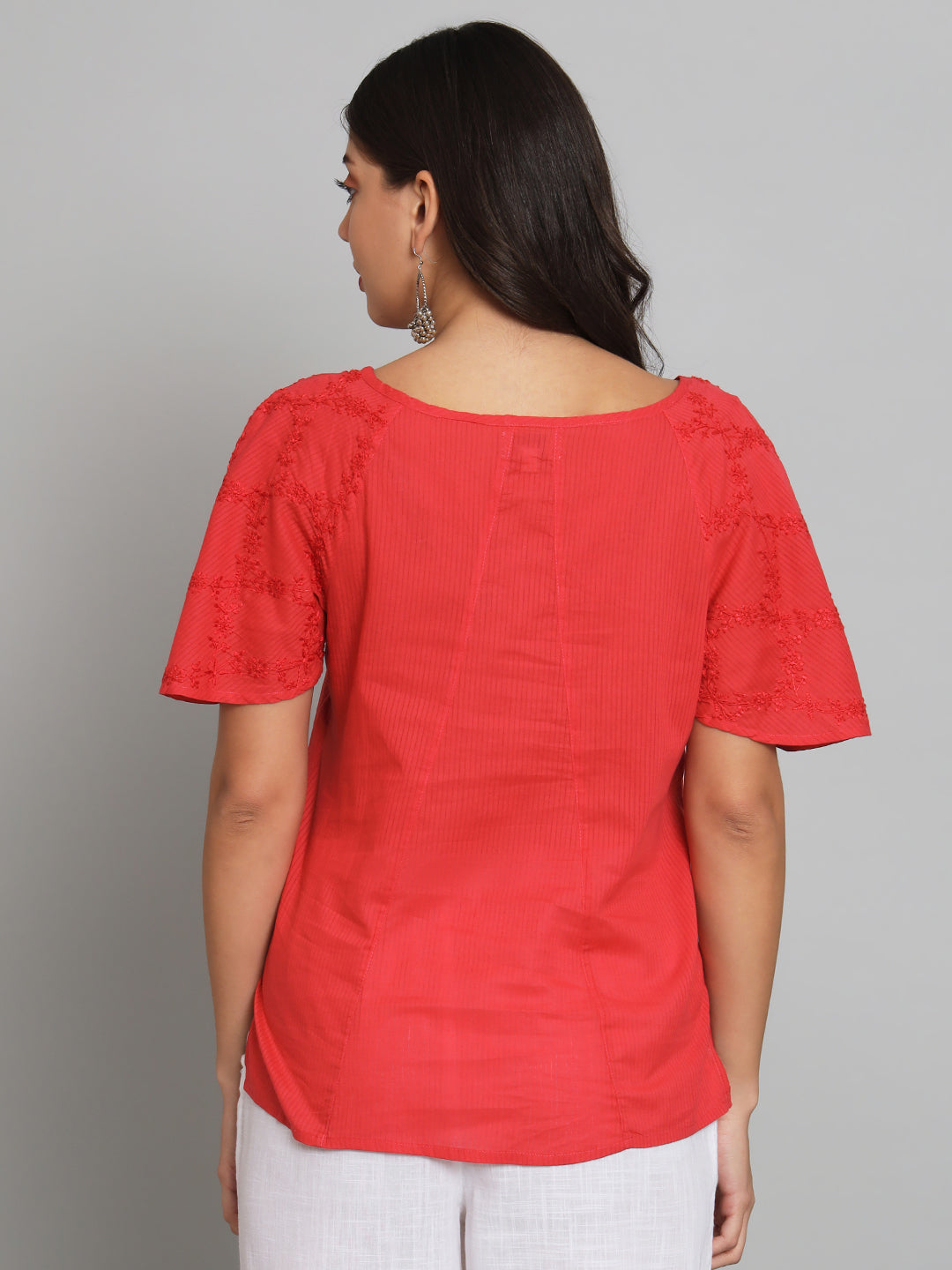 Red Chikankari Top with Raglan Sleeves