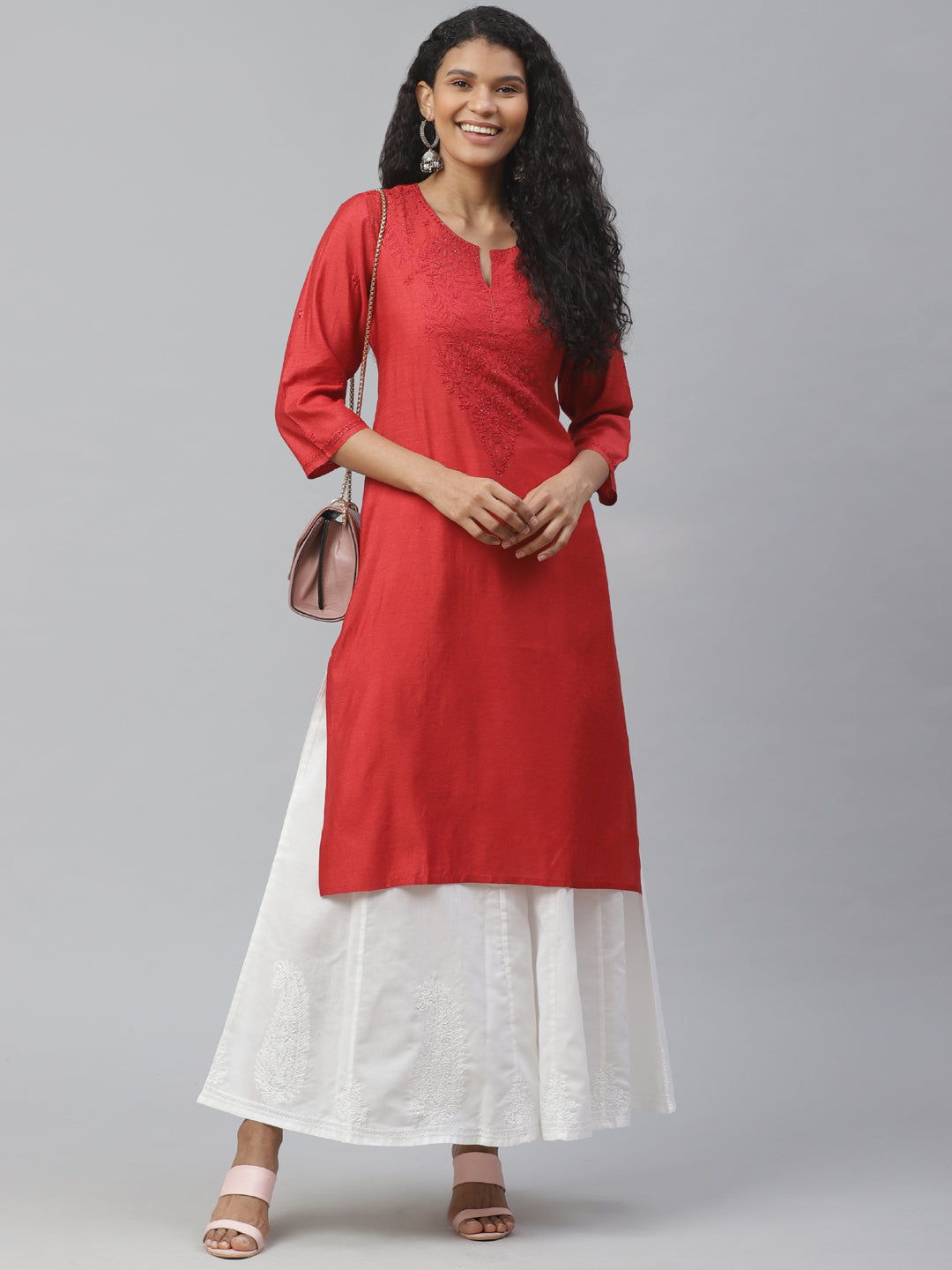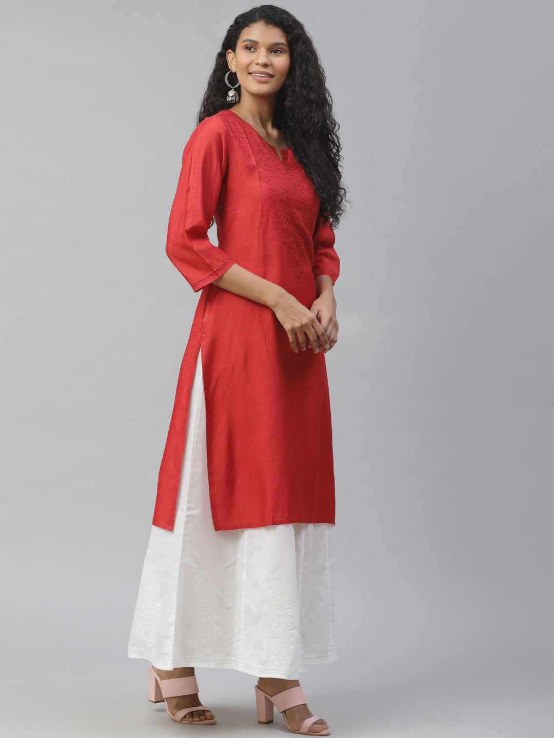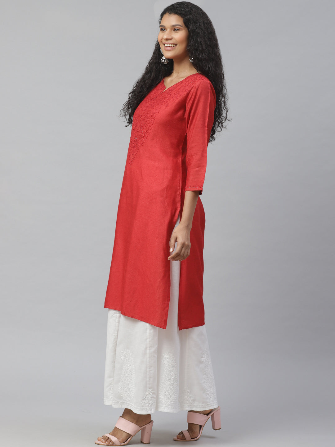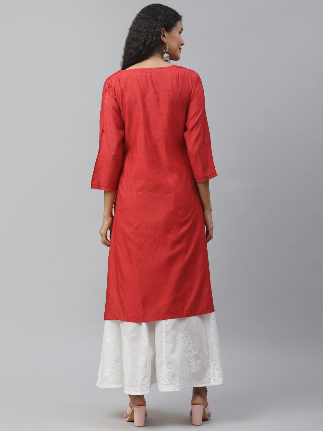 Red Silk Chikankari Kurta
