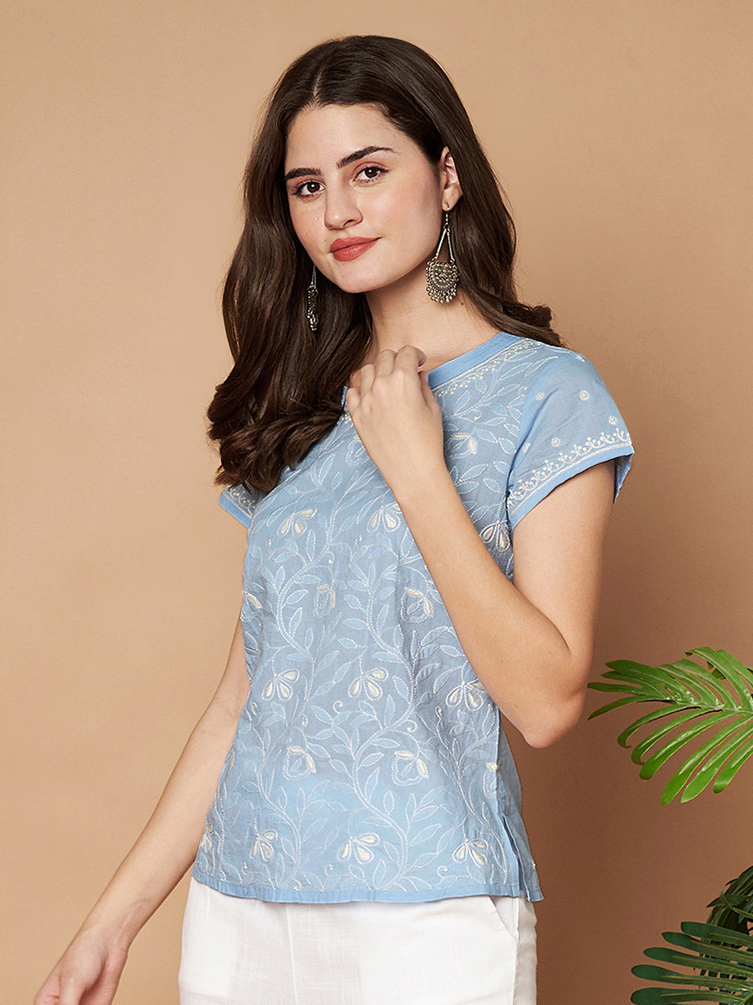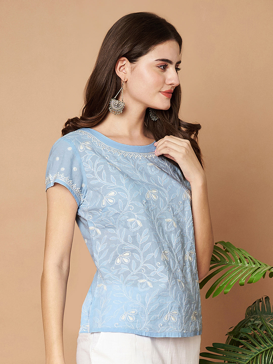 Chikankari is a traditional hand embroidery art form from Lucknow, India, involving intricate and delicate thread work on fine fabrics like cotton, georgette, or chiffon. Each piece is carefully hand-embroidered by skilled artisans, making it truly one-of-a-kind.