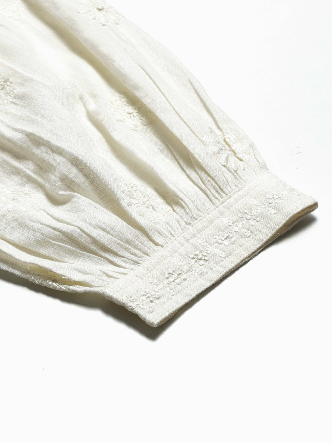 Jazz up your clothing selection with these one-of-a-kind akheri trousers. Set the tone for this season when you wear this embroidered off-white pair with a cute tee and some leather boots.