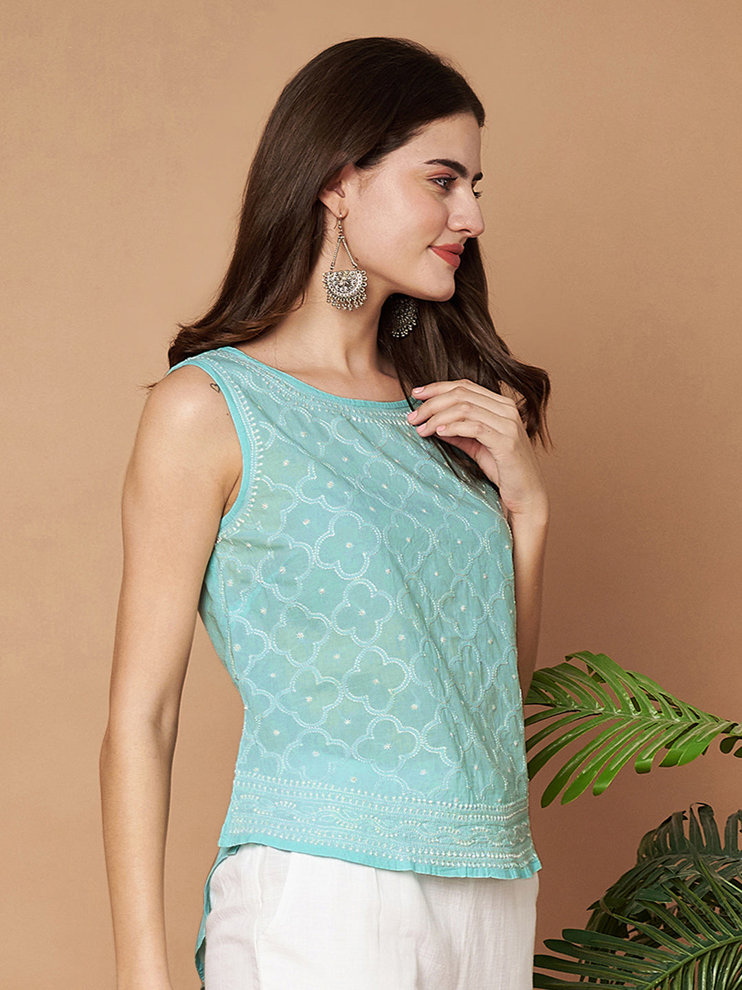 Turquoise Hand-embroidered Chikankari Top – Your Summer Essential