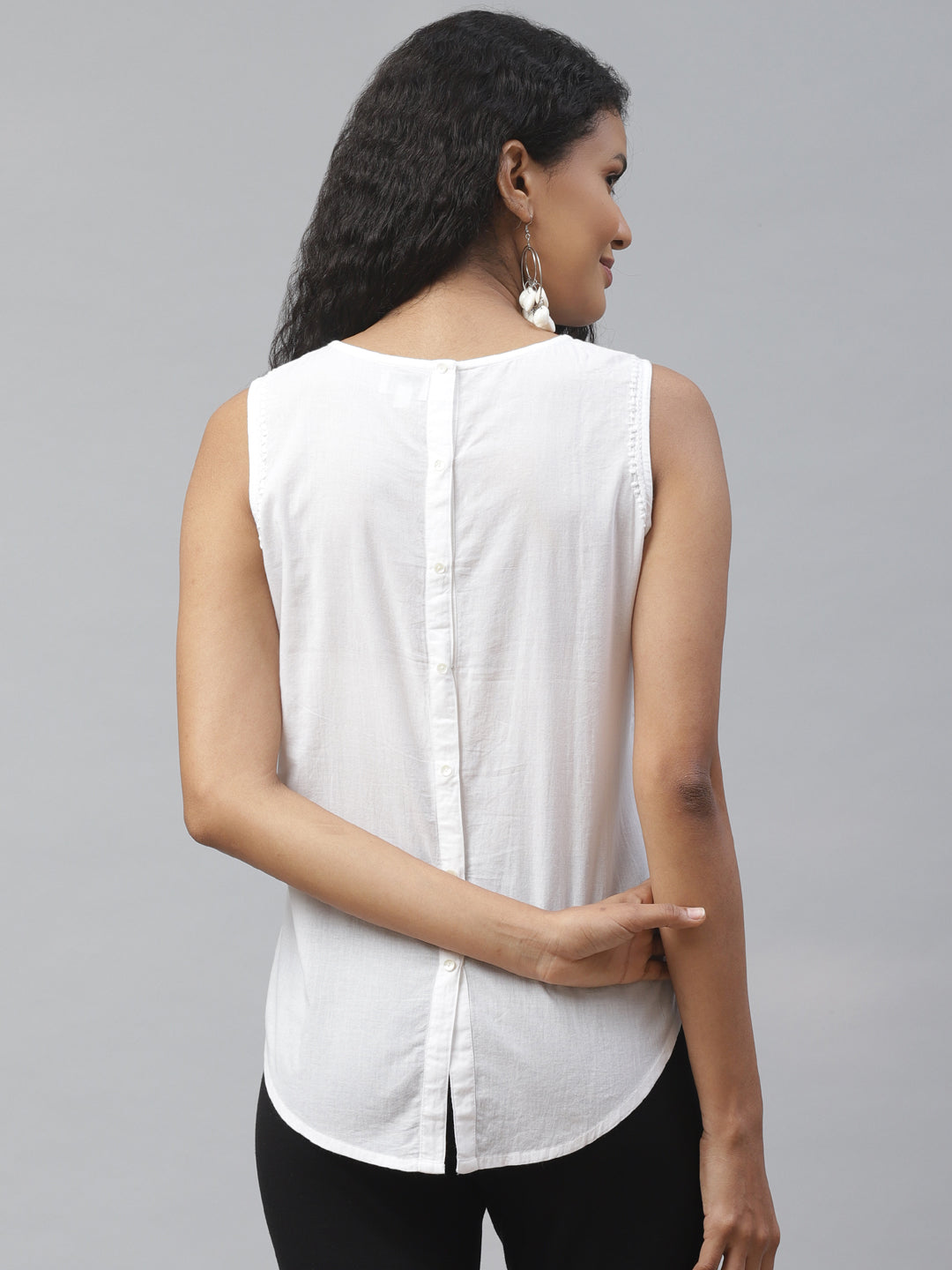 White Chikankari Back-Open Top